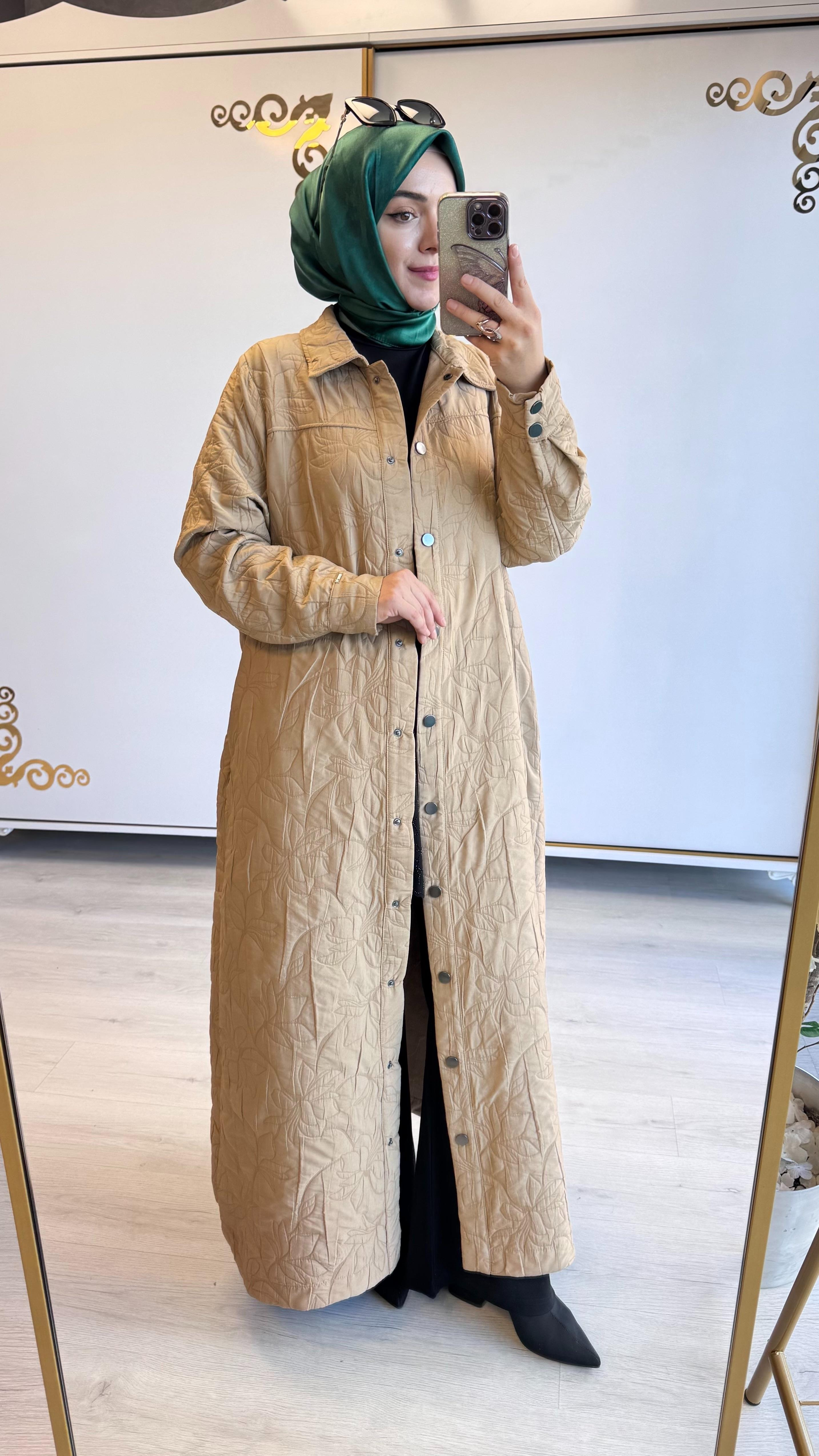 İnvee Triko Sarmaşık Desen Kapitone Kap Camel
