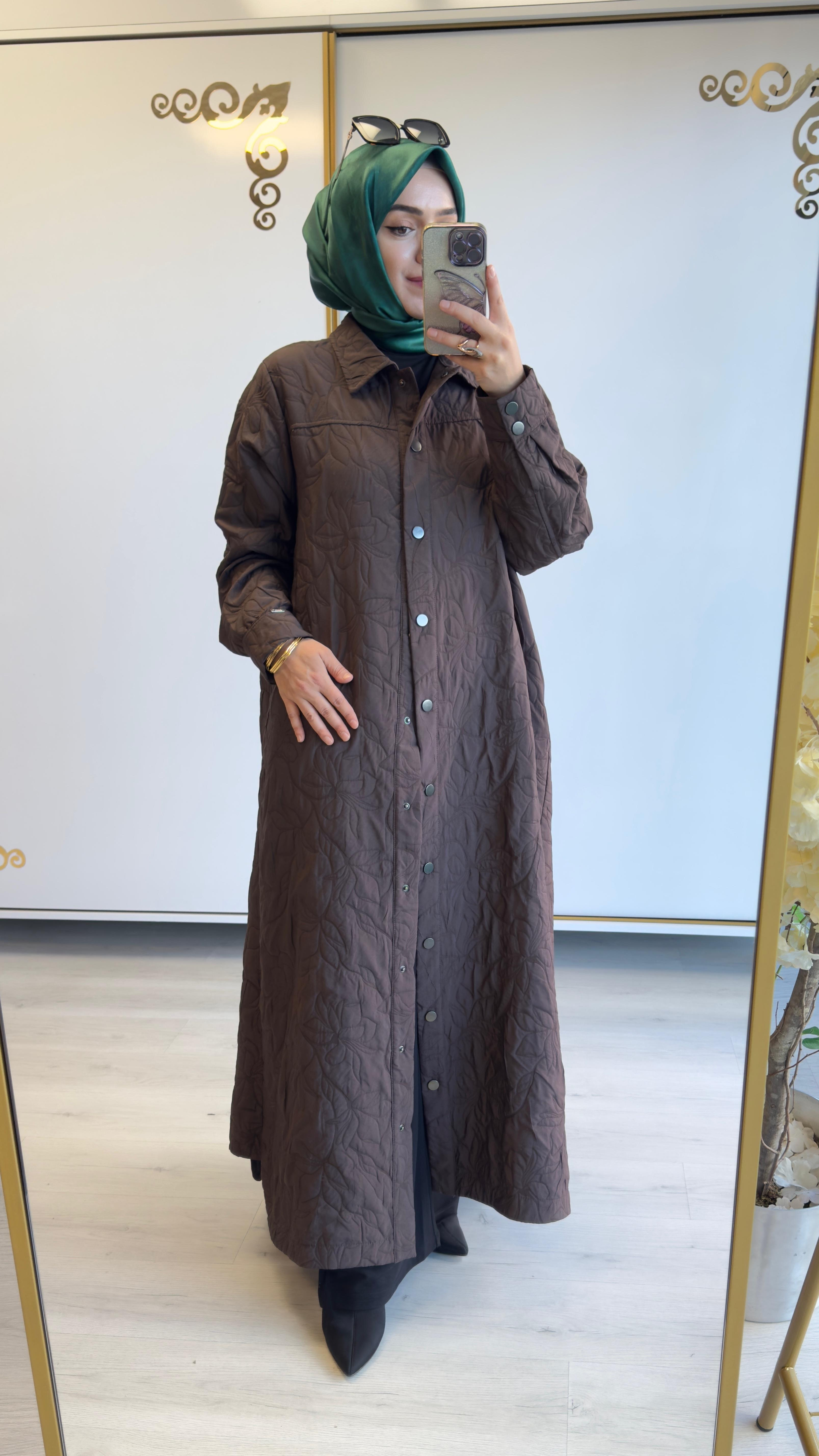 İnvee Triko Sarmaşık Desen Kapitone Kap Kahverengi