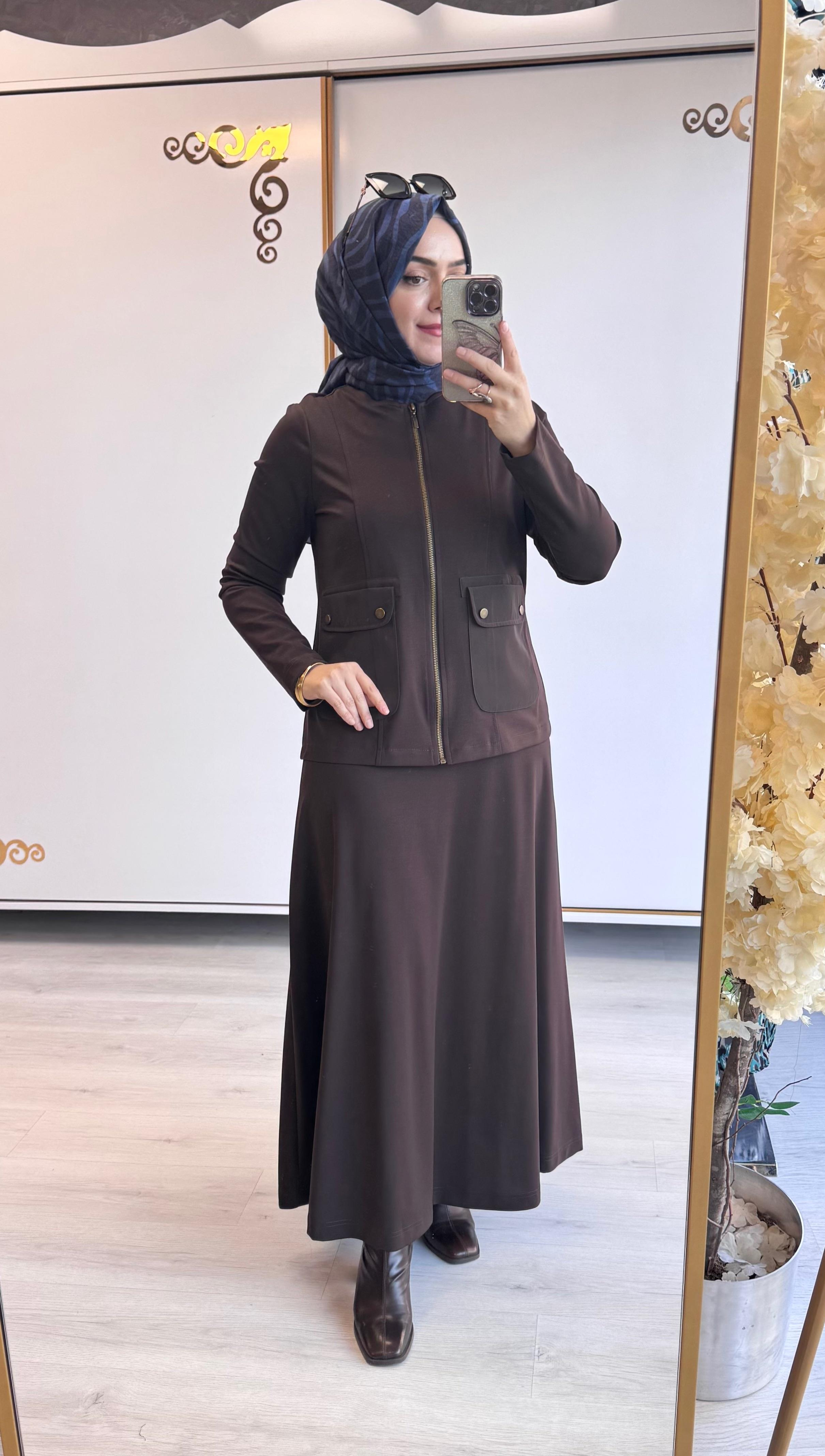 Nurcan Çetin Ceket Etek Takım Kahverengi