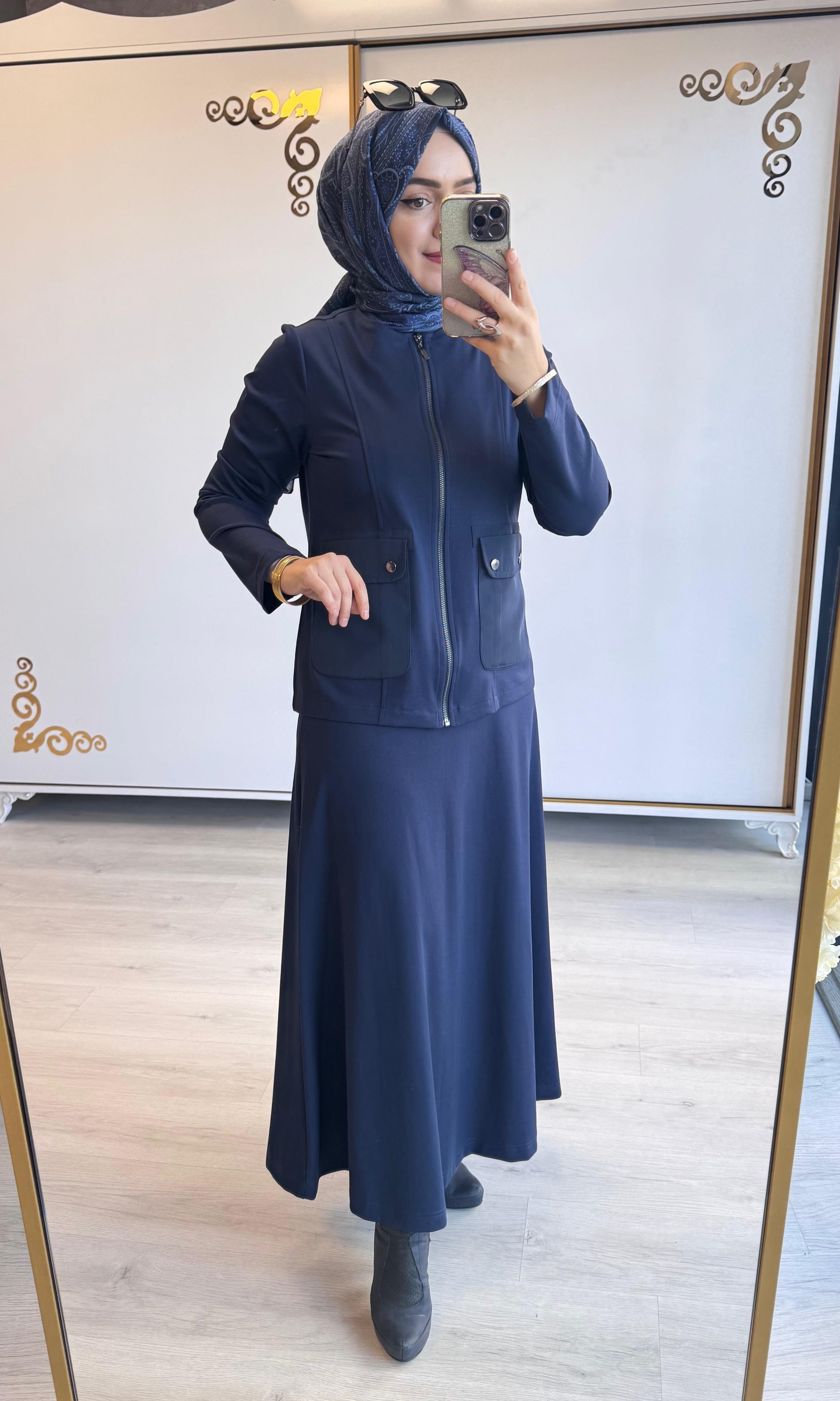 Nurcan Çetin Ceket Etek Takım Lacivert