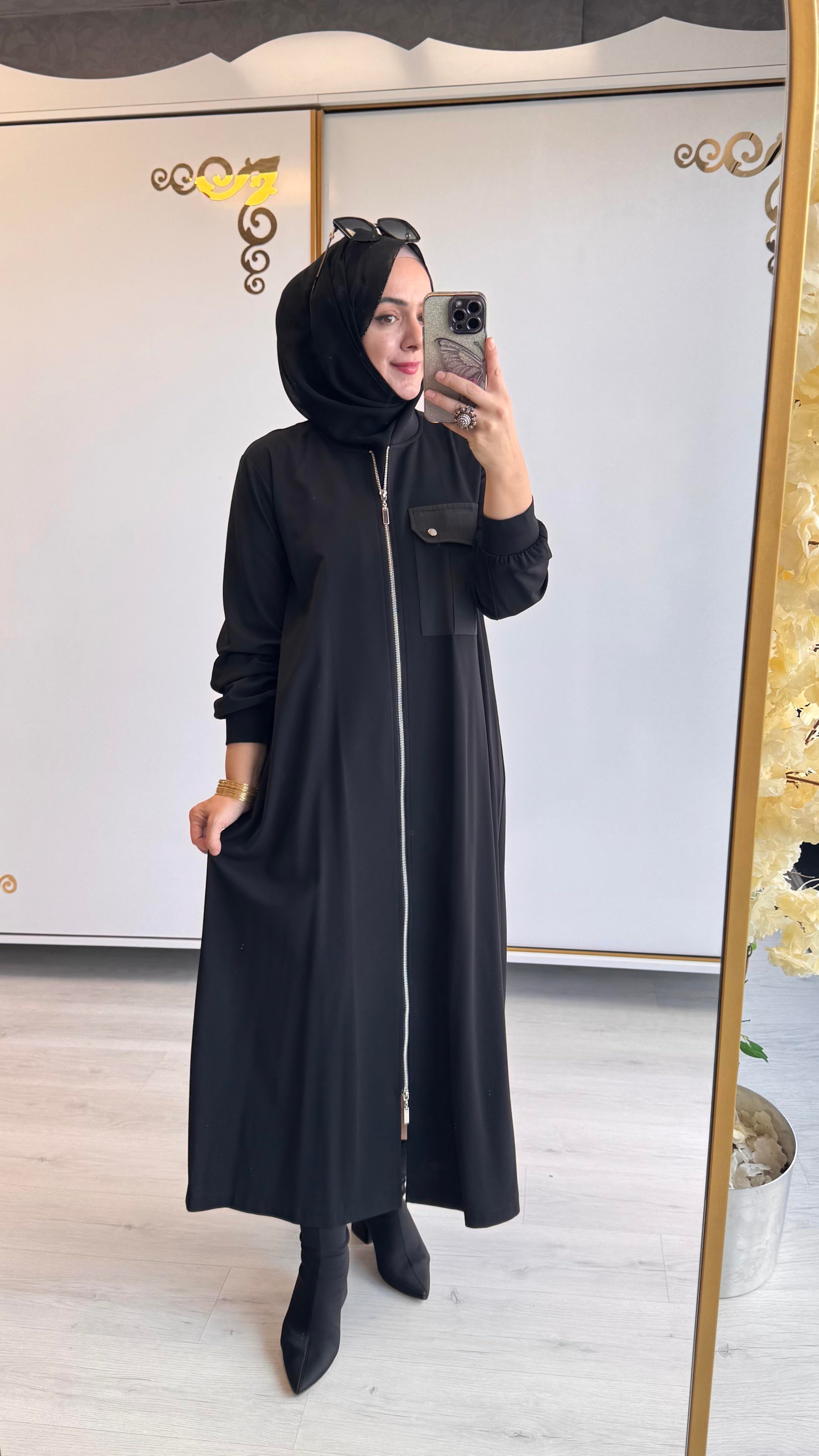 Nurcan Çetin Çift Fermuarlı Ferace Siyah