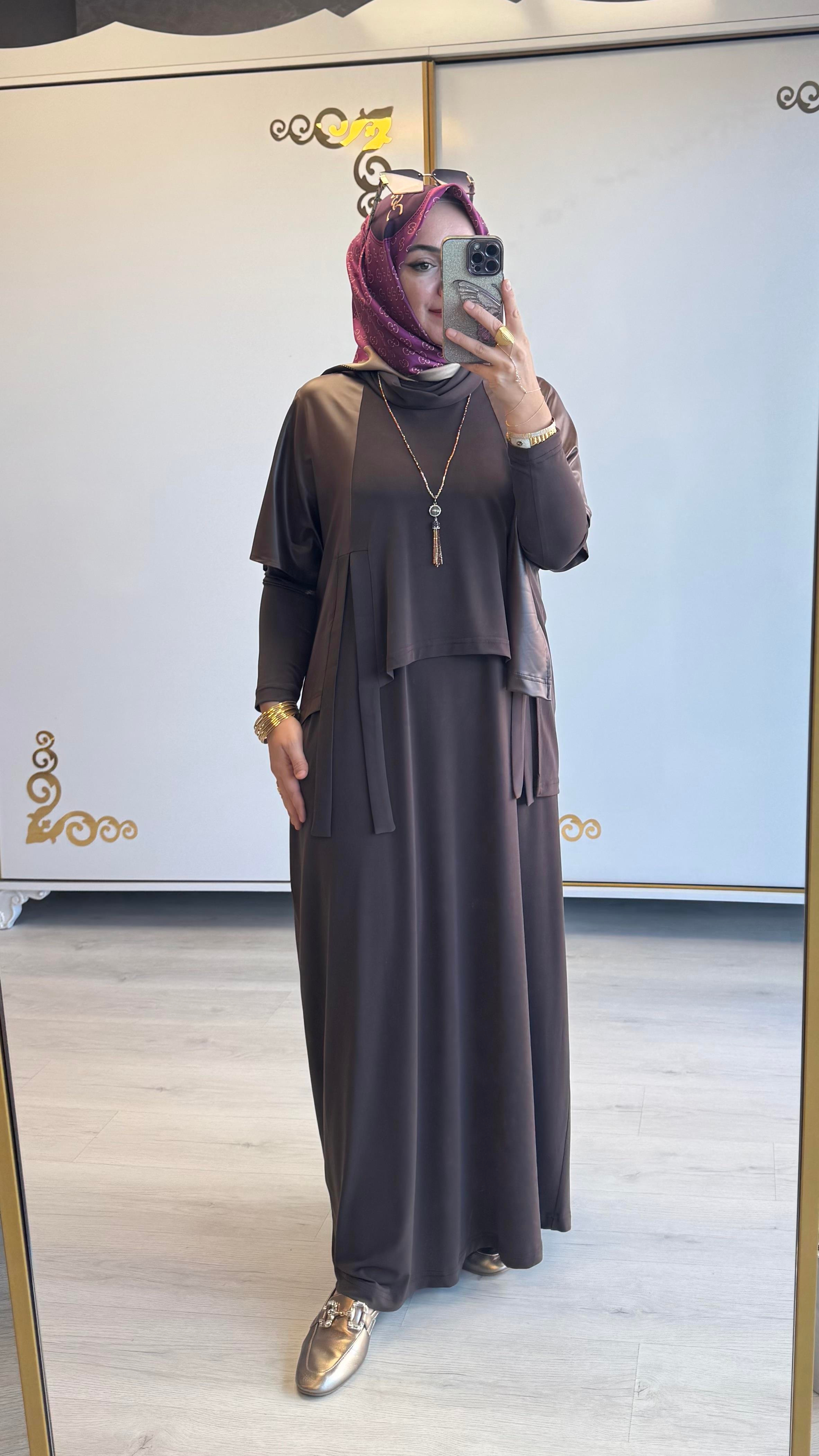 Nurcan Çetin Deri Detaylı İkili Takım Elbise Kahverengi