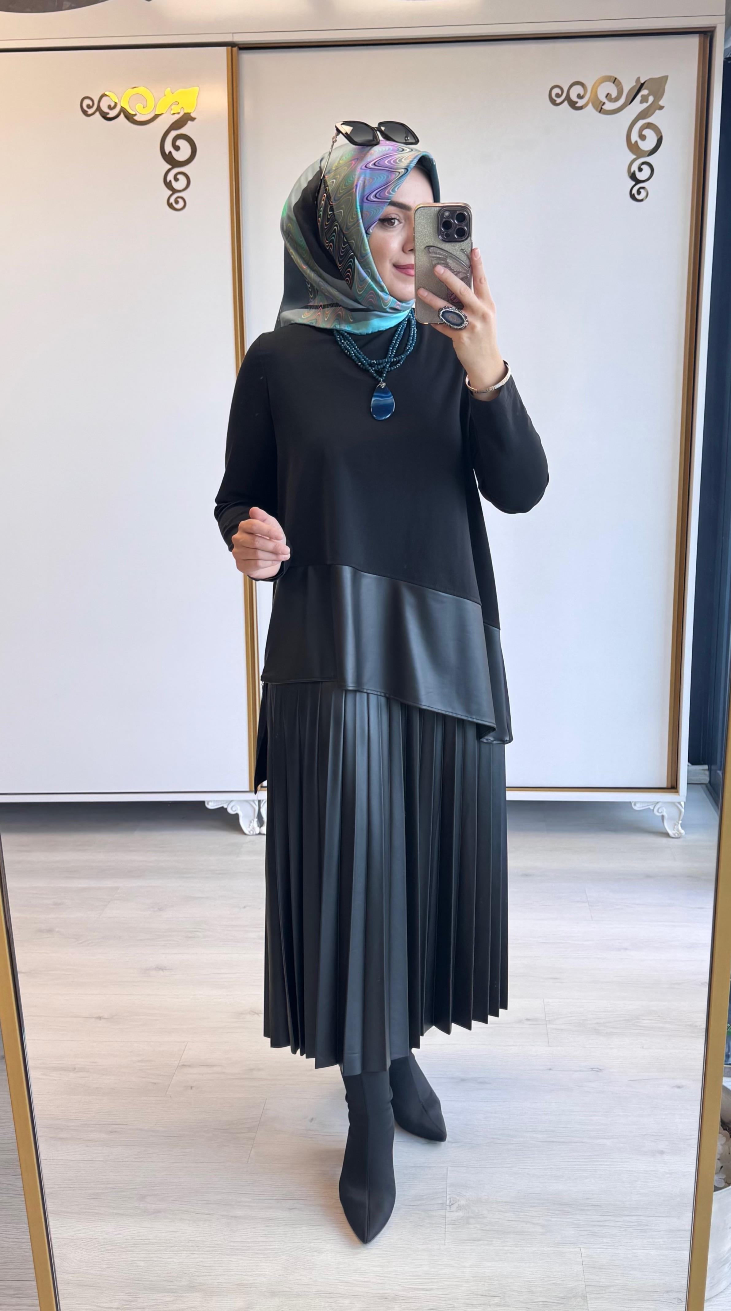 Nurcan Çetin Deri Etekli Takım Kahverengi