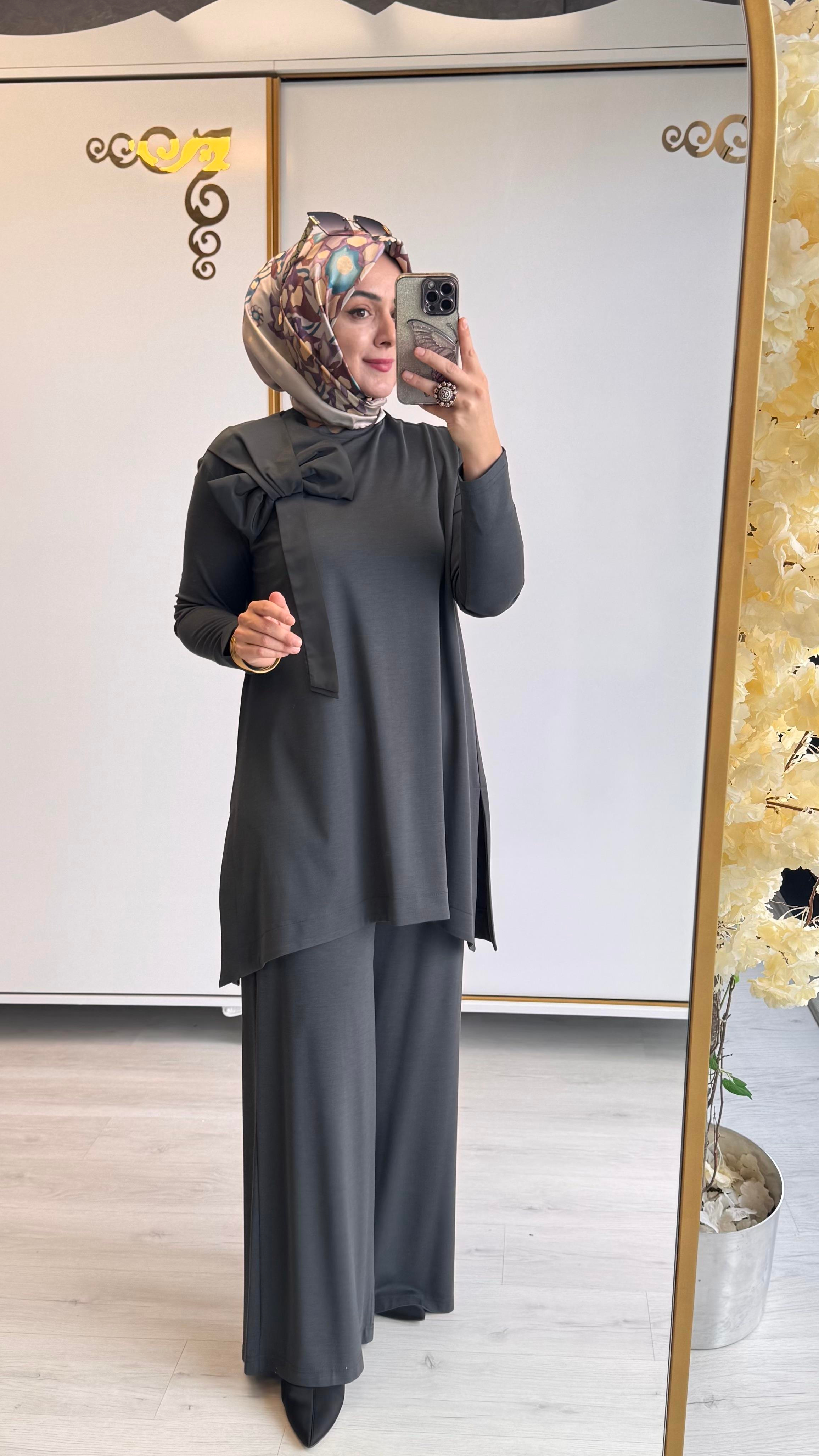 Kalıp: Rahat Kumaş Tipi: Bambu Detaylar: Paraşüt Boy: Uzun Yaka Tipi: Bisiklet Yaka Kol Tipi: Standart Kol Kol Boyu: Uzun Desen: Düz Alt-Üsttakım: Tunik-Pantolon Pantolon: Beli lastikli, cepli