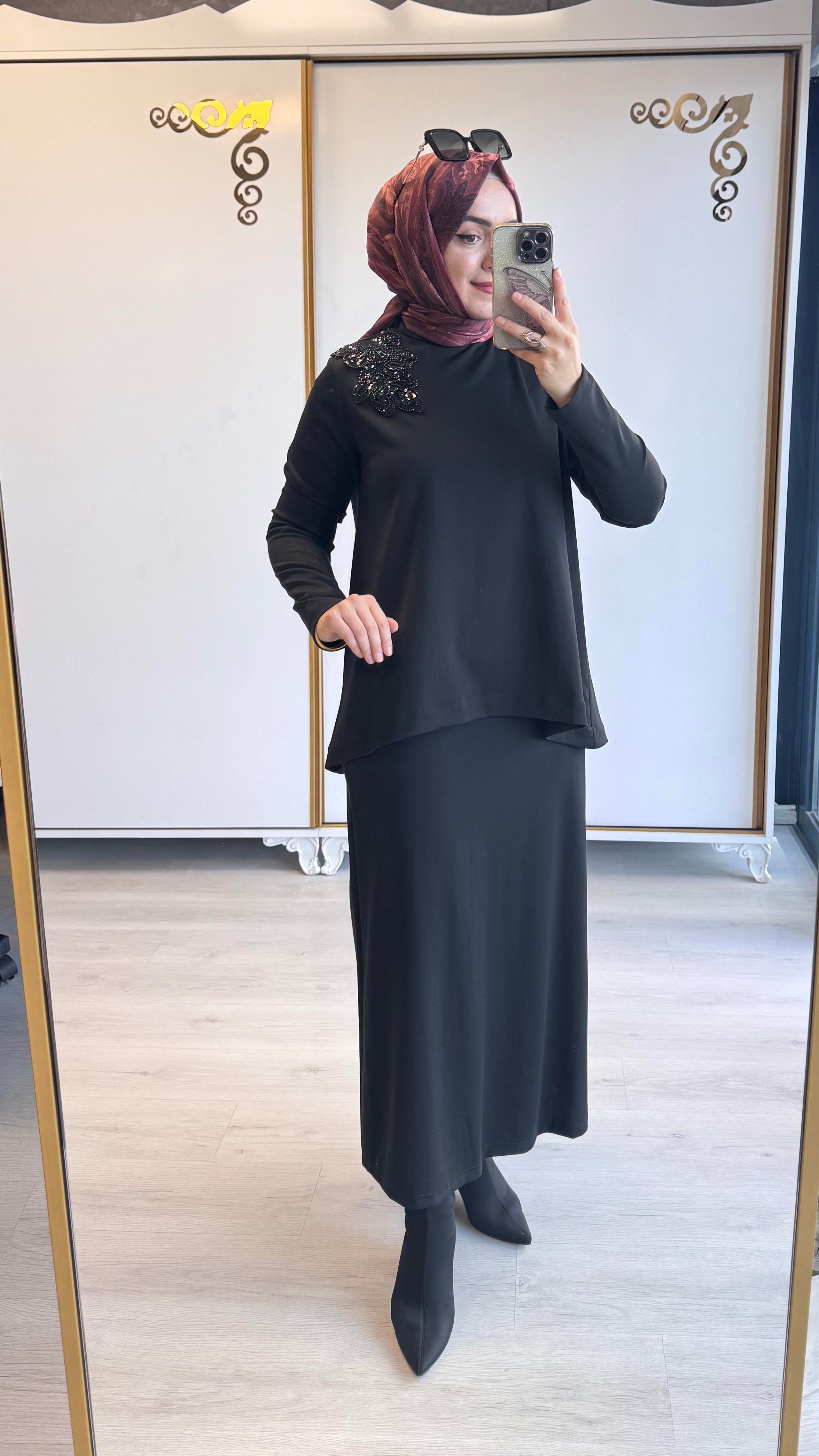 Nurcan Çetin Kalem Etekli Takım Siyah