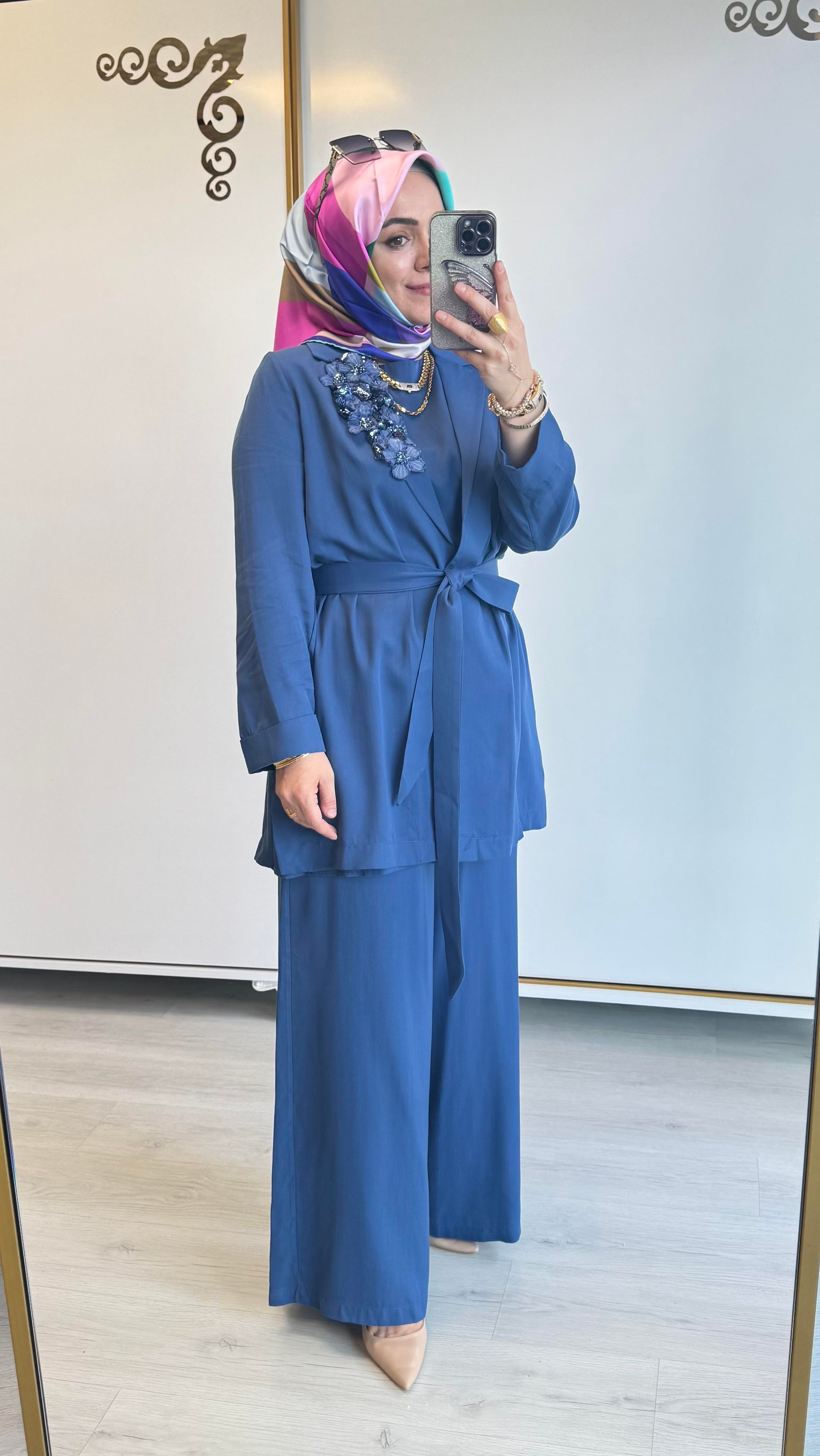 Nurcan Çetin Üçlü Ceketli Takım Mavi