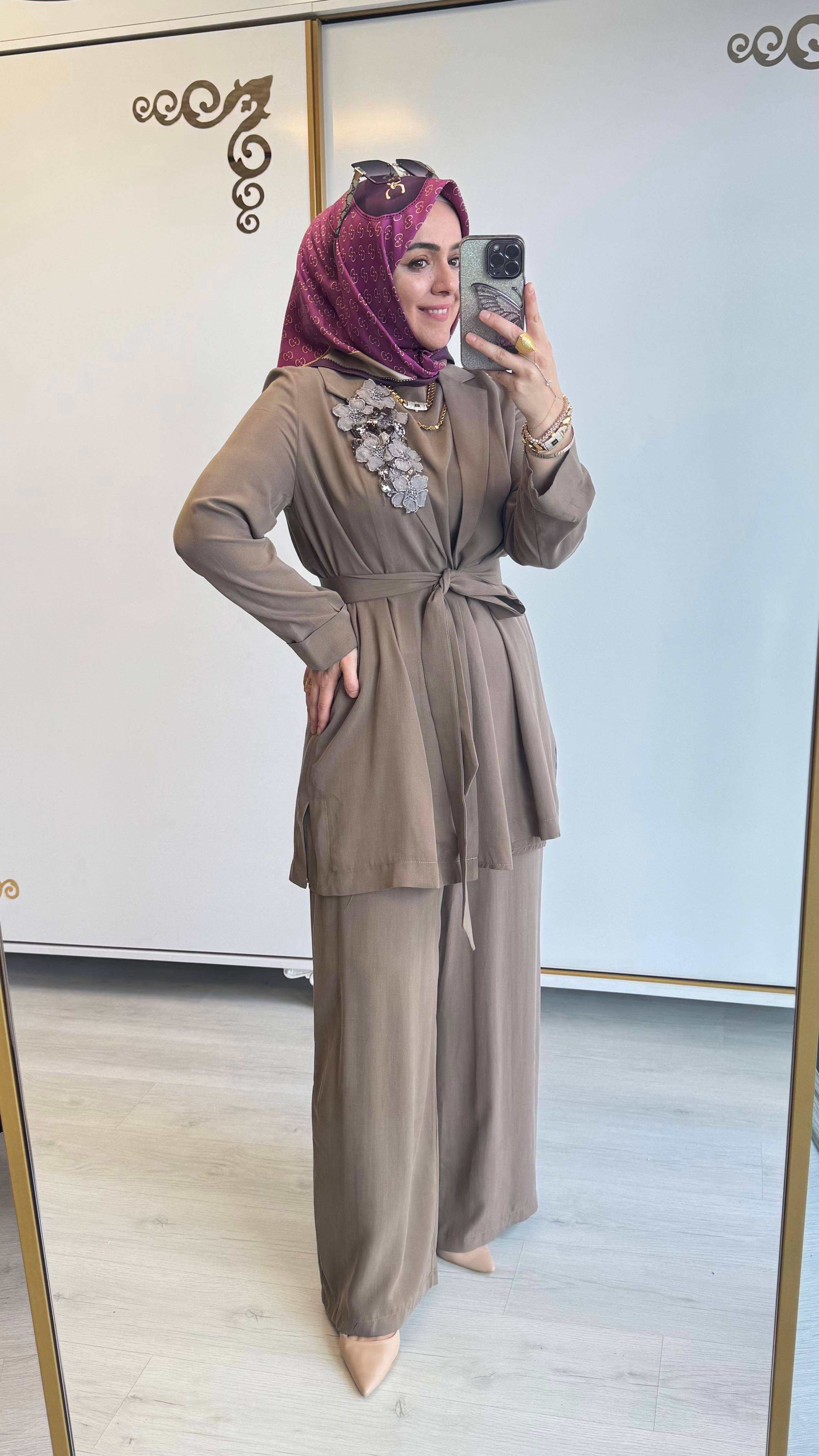 Nurcan Çetin Üçlü Ceketli Takım Vizon